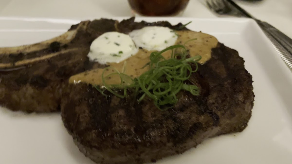 5-stars all the way! From start to finish, everything was on point. To me, their strong suit is their excellent service. Everyone has a role and they dominate each position. From refills, table clean ups, surprise mini bites, food delivery, etc. Everything was great! We'd like to thank our waiter, Eddie V, for doing amazing job last night. He presented himself with such professionalism and treated us like VIP guests. He gave us complimentary Prosecco flutes, complimentary smoked salmon roe, and pumpkin pie bites for dessert. We ordered a porterhouse steak (28 oz) for about $120; medium rare with a cool center. It was served with 3 dipping service which paired beautifully with. The steak was nicely cooked but I do wish it had a better crust on it. We also paired the steak with 3 sides: mashed potatoes, creamed spinach, and lobster Mac. The best was their lobster truffle Mac because of the flavors. The mashed potatoes were just eh and their spinach was good. The sides are small but I think enough to get you full. My wife and I shared everything which filled us up. For dessert, we had their banana bombe which had vanilla-banana ice cream covered with a chocolate dome and an espresso-caramel sauce to melt everything. This dessert was perfect and definitely one of our favorites. I forgot to mention their bread basket being excellent too with a buttery and flaky croissants, white bread and this sesame cracker. The bread and butter is always a must and a hit. The cotton candy in the end is just everything and the cherry on top. We had an excellent time for my birthday dinner here. They give you this tiny cupcake with a candle and a greeting message written in melted chocolate. We will be coming back for sure and this time, I'll have a glass of whiskey. Their whiskey collection is huge here with lots of top shelf and rare labels.