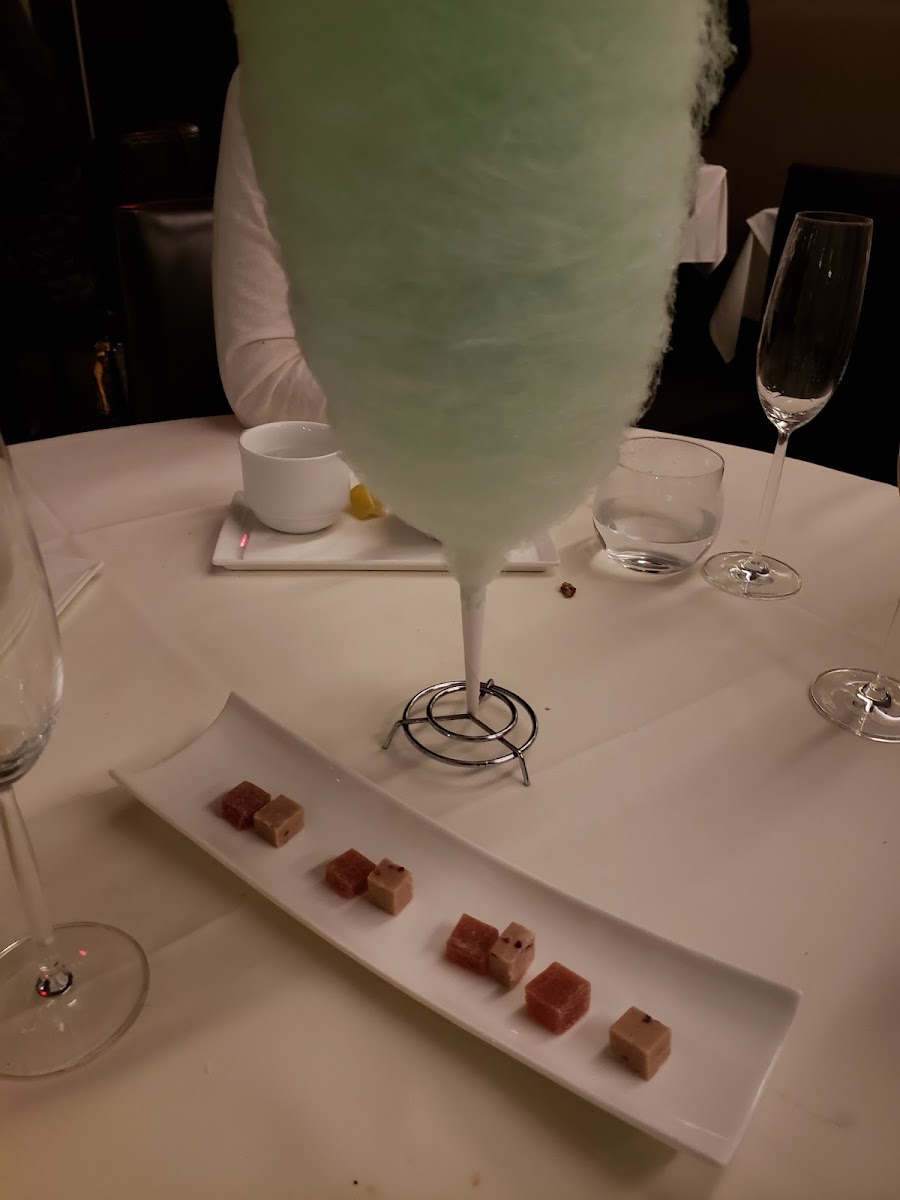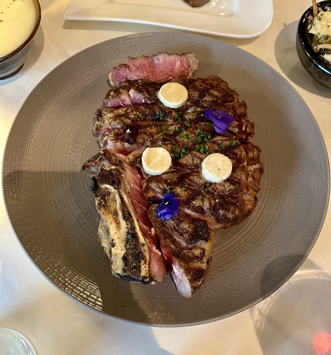 My friends and I have an annual tradition for the last couple of years to go to a steakhouse on New Year's Eve and indulge. For 2024 NYE, we chose Alexander steakhouse. The meal started off with a complimentary bread basket and crab salad amuse bouche. Both were delicious! We knew we were going to go heavy on the entree so we added truffle fries to start in the beginning. Keep it light, haha. Fries were delicious! For my entree, I shared the split-bone ribeye with my hubs. I like my steak medium well. This was cooked to perfection! It was served with a Bordelaise sauce. For sides, we shared truffle mac and cheese, mashed potatoes, mushrooms, and creamed spinach. Yum, yum, yum and yum!! A few of my friends shared the porterhouse. Sadly, they weren't impressed . And another friend ordered the Mero which she loved! Finally, we ordered the Shibuya crossing, banana bombe and ice cream trio. I personally thought the dessert was just okay but my friends loved them! The restaurant also served complimentary cotton candy and sweets. Overall, I had a great time at Alexander's Steakhouse!